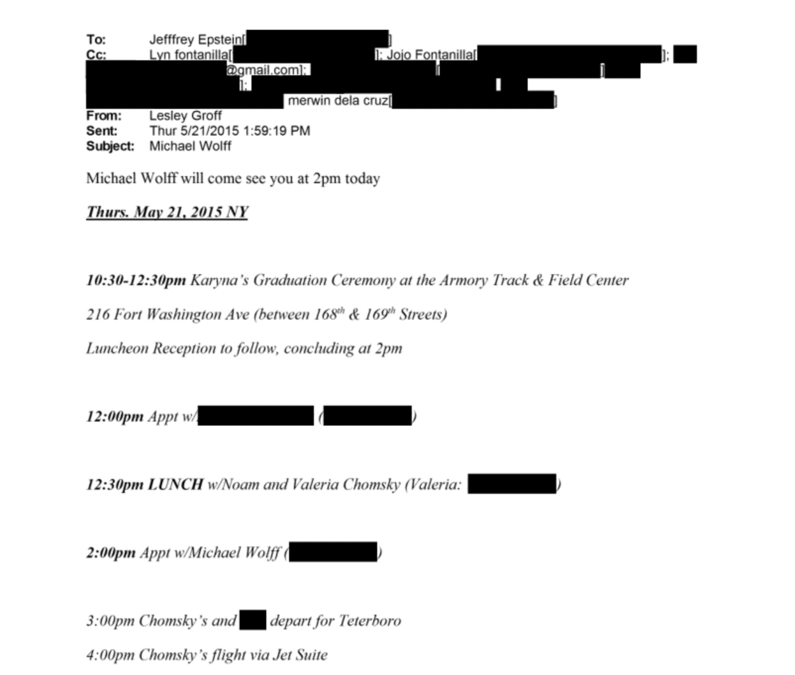 Epstein attended Noam Chomsky’s daughter’s graduation ceremony in 2015.