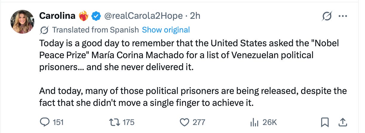 I’m curious to see how the crowd that denies political prisoners existed in Maduro’s socialist utopia will handle this cognitive dissonance.