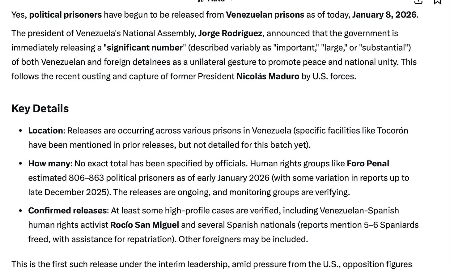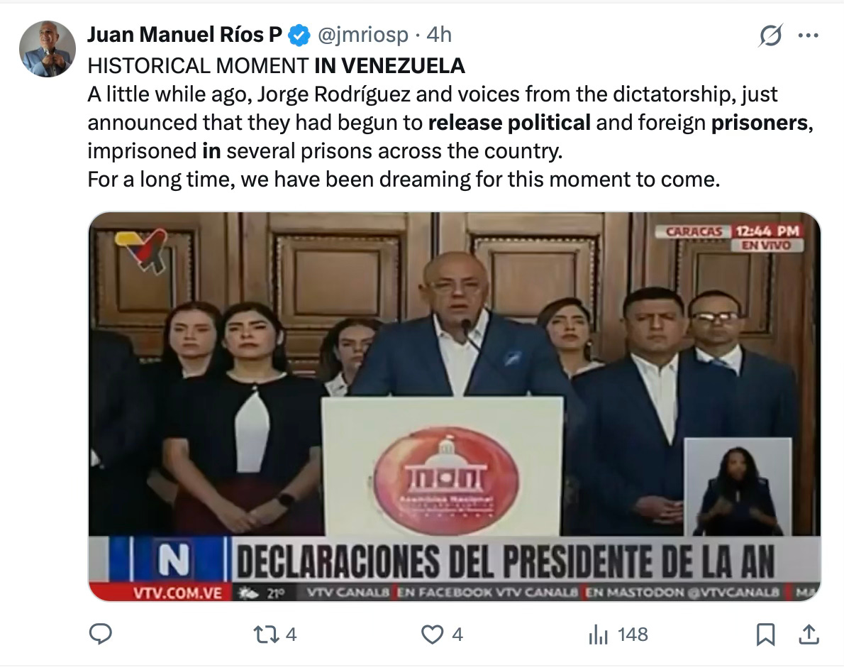A "Significant Number" Of Political Prisoners, Domestic And Foreign, Have Begun To Be Released From Prisons Across Venezuela
