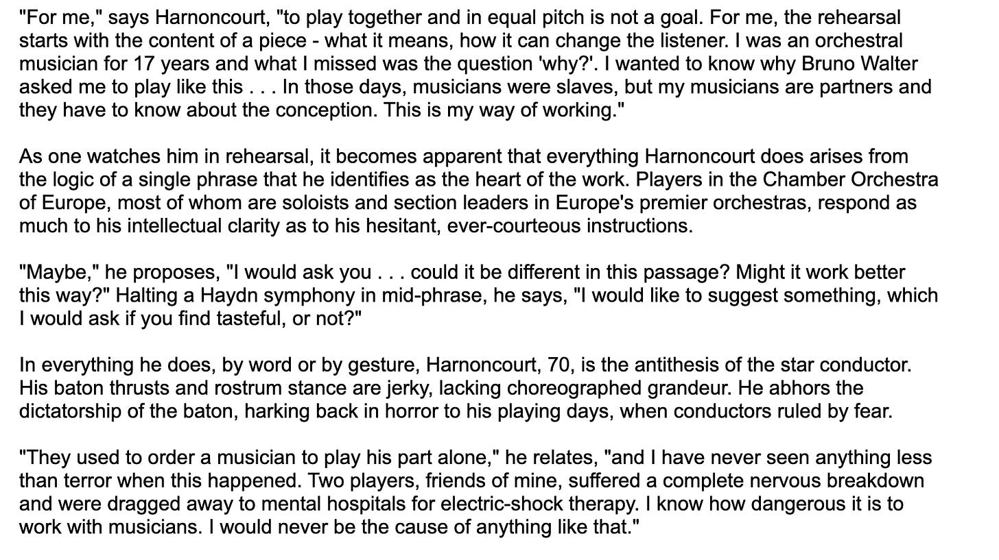 Outtake from this 2000 article on Harnoncourt.