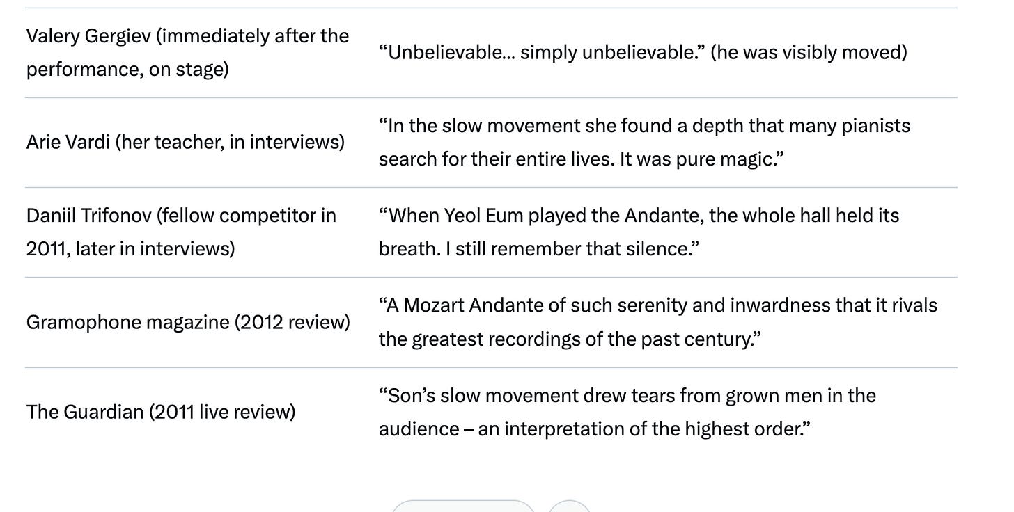 Advent Calendar Dec 9: Yeol Eum Son's (Memorized) Performance Of Mozart's Piano Concerto No. 21, K. 467: "Simply Unbelievable."It's Still Dec 9 West Of Idaho/Montana 🫩Celia FarberDec 10, 20254293SharePreviousNext