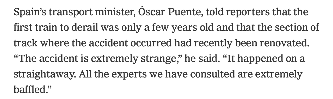 "The Accident Is Extremely Strange...All The Experts We Have Consulted Are Extremely Baffled." "A Night Of Deep Pain," Said Pedro Sanchez