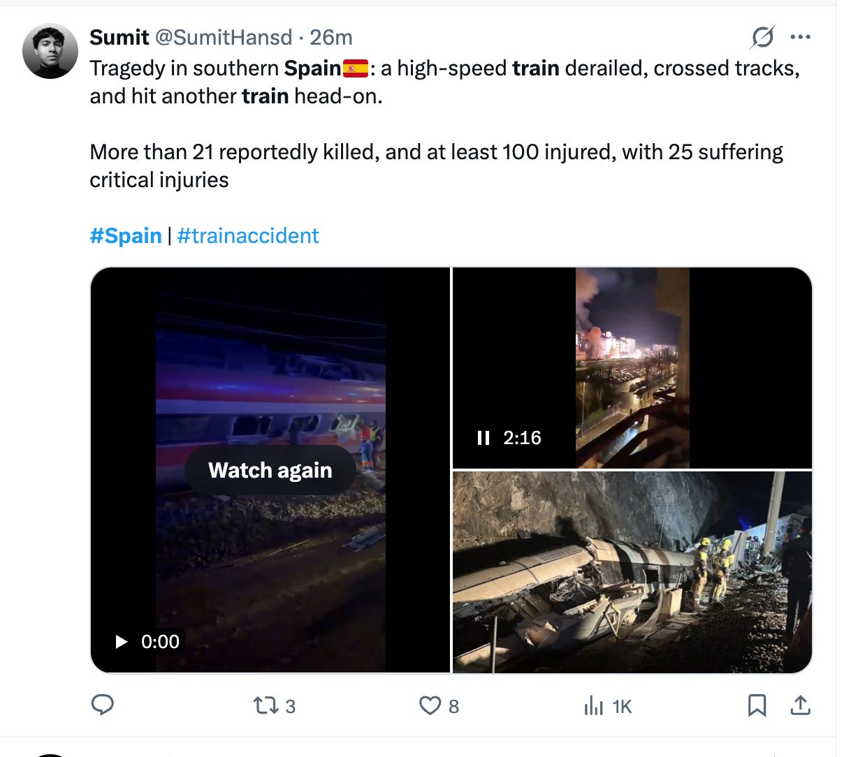 At Least 21 Killed, Over 100 injured In Head On Train Collision In Southern Spain