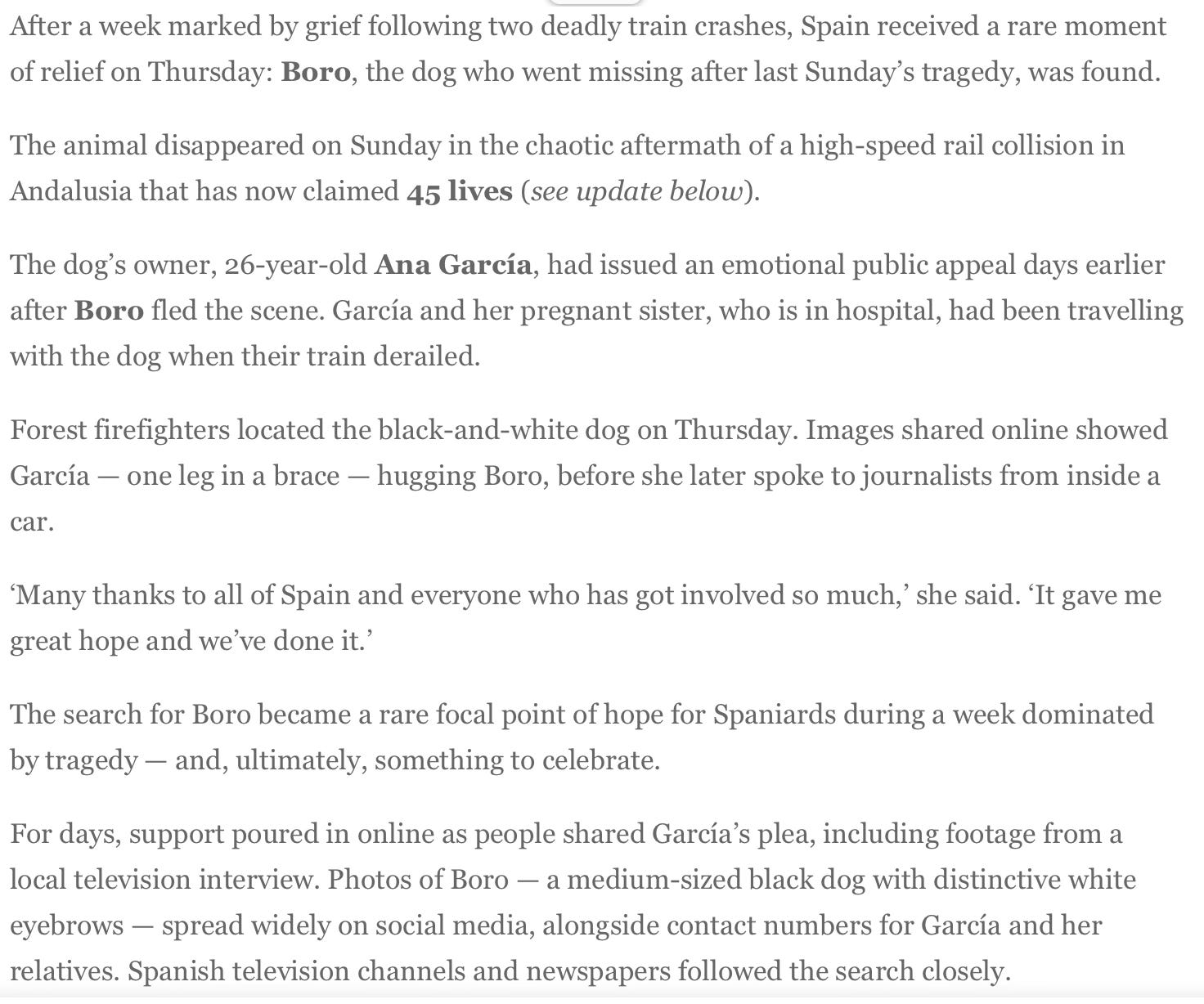 Boro The Missing Dog FOUND Safe And Reunited With Overjoyed Owner, After Spanish Social Media EffortCelia FarberJan 23, 20265753ShareLink to print story here. Previous coverage of Ana García’s story here.PreviousNext
