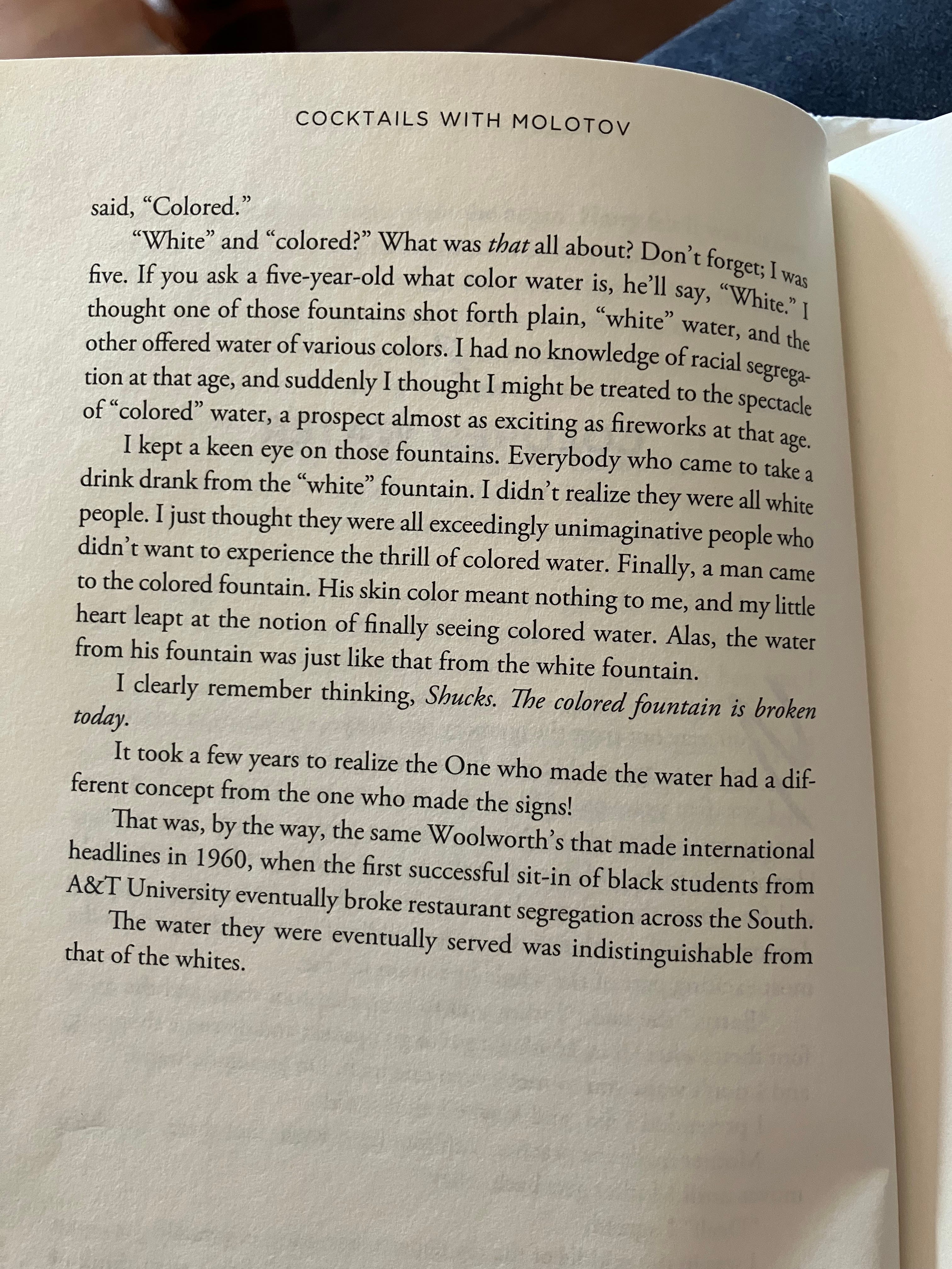 I named this book, for my father. He was going to name it “Colored Water” but I said: “You had actual cocktails in Moscow with Molotov. Why not name it “Cocktails With Molotov?” My suggestion was accepted. This is the story for which the book was originally going to be named. I think it is a story that could be a fable, like a Hans Christian Anderson fable, like The Emperor’s New Clothes. I still cry when I read it.