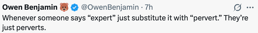 Owen Benjamin posted something about him on X too vulgar to re-post, but I have captured a few PG snippets: