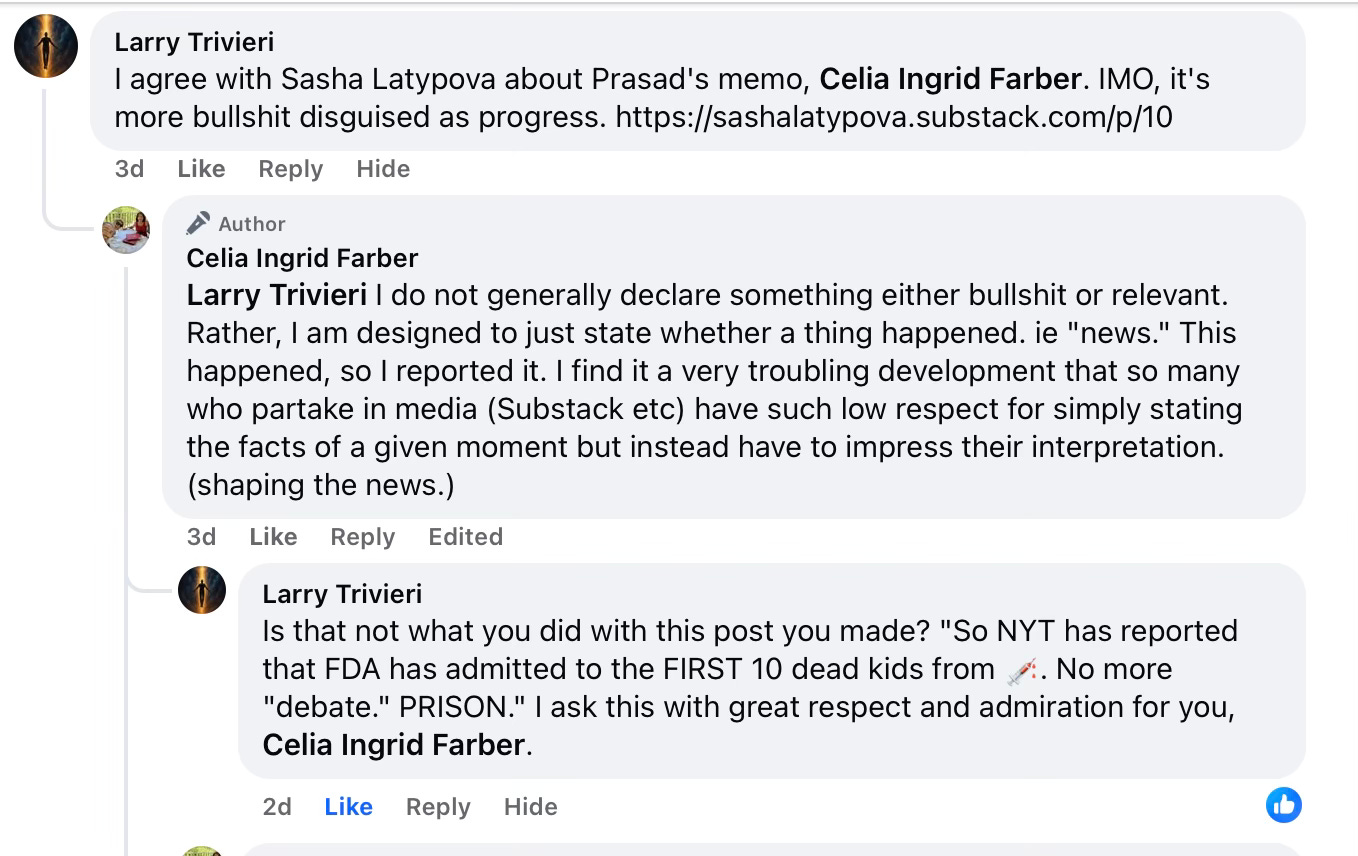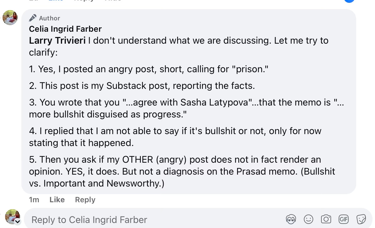 Here’s two screen shots of a back and forth I had on FB with a (medical, health freedom) writer and old friend, Larry Trivieri.