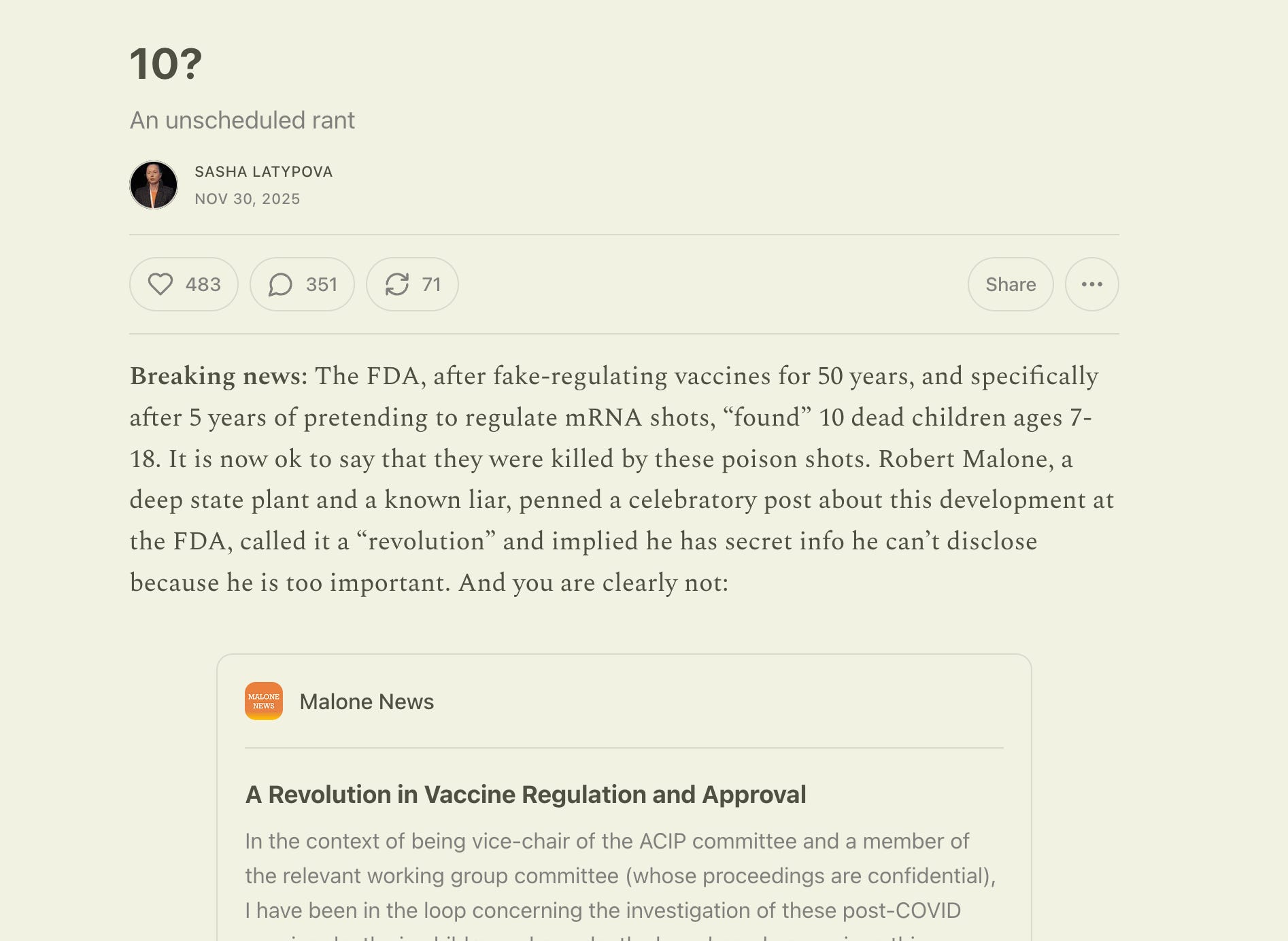 Neither Sasha nor Larry are wrong. (Robert Malone’s support of the memo need not be a reason shadow falls on the memo, no?)