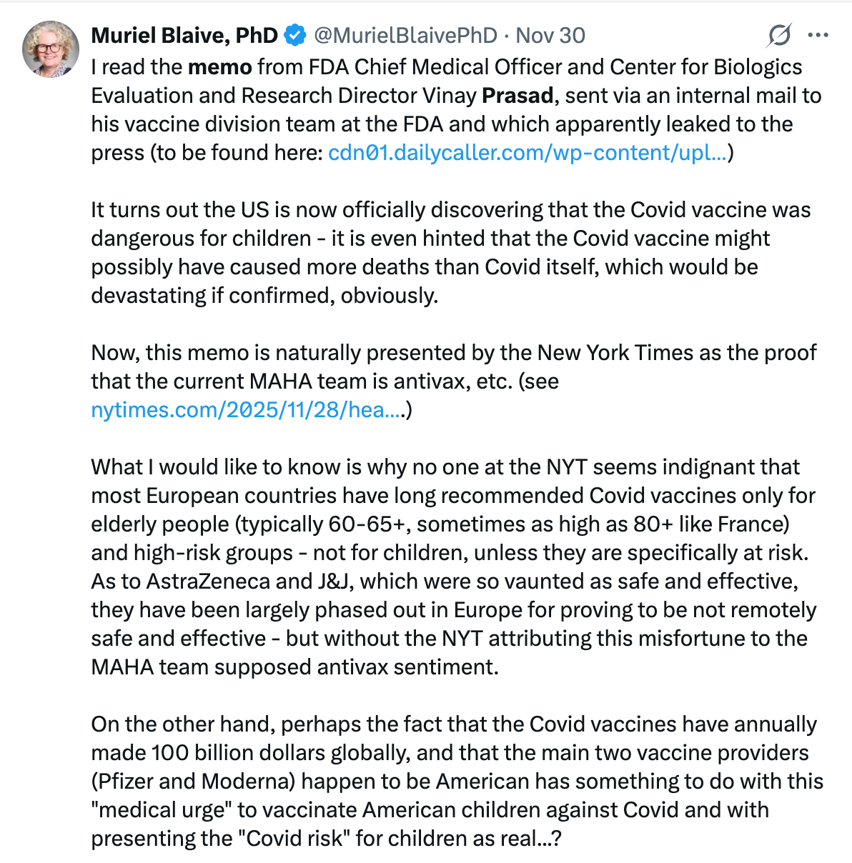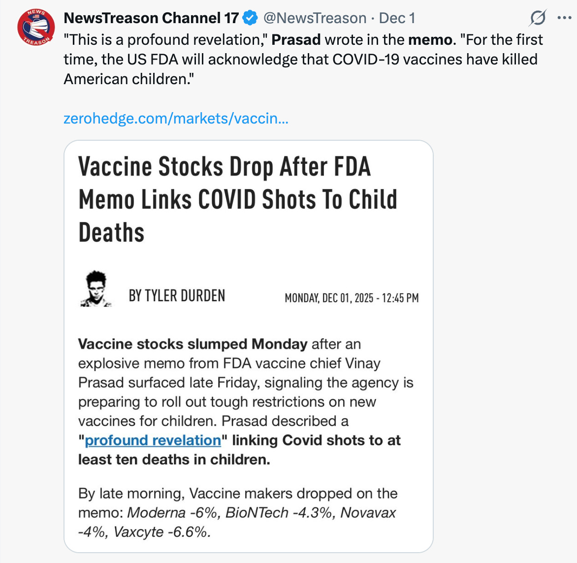 A few screenshots from X—first, an outtake from the Prasad memo, which I first wrote about here.