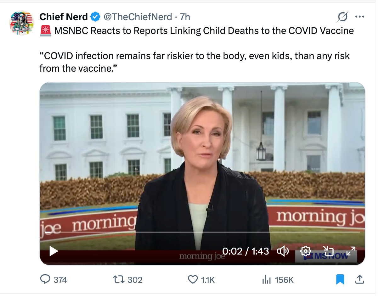 I’ll take the win on this one. Obviously, it is only a (very much needed) first step, but that is a step that obviously has needed to be taken for decades and somehow never was. The leviathan that is Big Pharma and the Washington “health” establishment is big, powerful, omnipresent in our lives and deeply embedded in all things “Establishment”. You have to start somewhere starving this beast and cutting off the oxygen. They just kicked out one of the stools holding it up and stuck a blade in its ribs. That’s not enough, but the Beast is now squirming. Let’s see how this plays out, and give RFK et al. our support and some breathing room