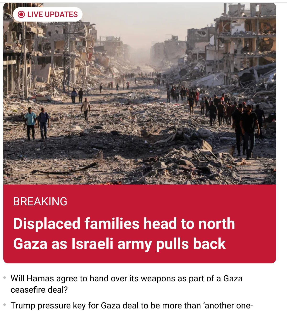 Israeli Troops Retreat From Gaza, As Thousands Of Survivors Return Home. Israelis Celebrate Trump, As Far Right Gvir and Smotrich Rage, Threaten To Dismantle The Netanyahu Government