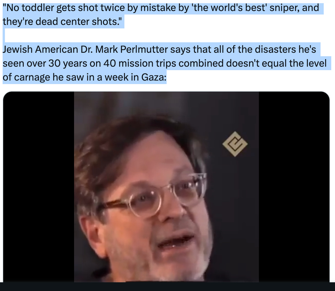 Jewish doctor bearing witness to what he experienced in Gaza.