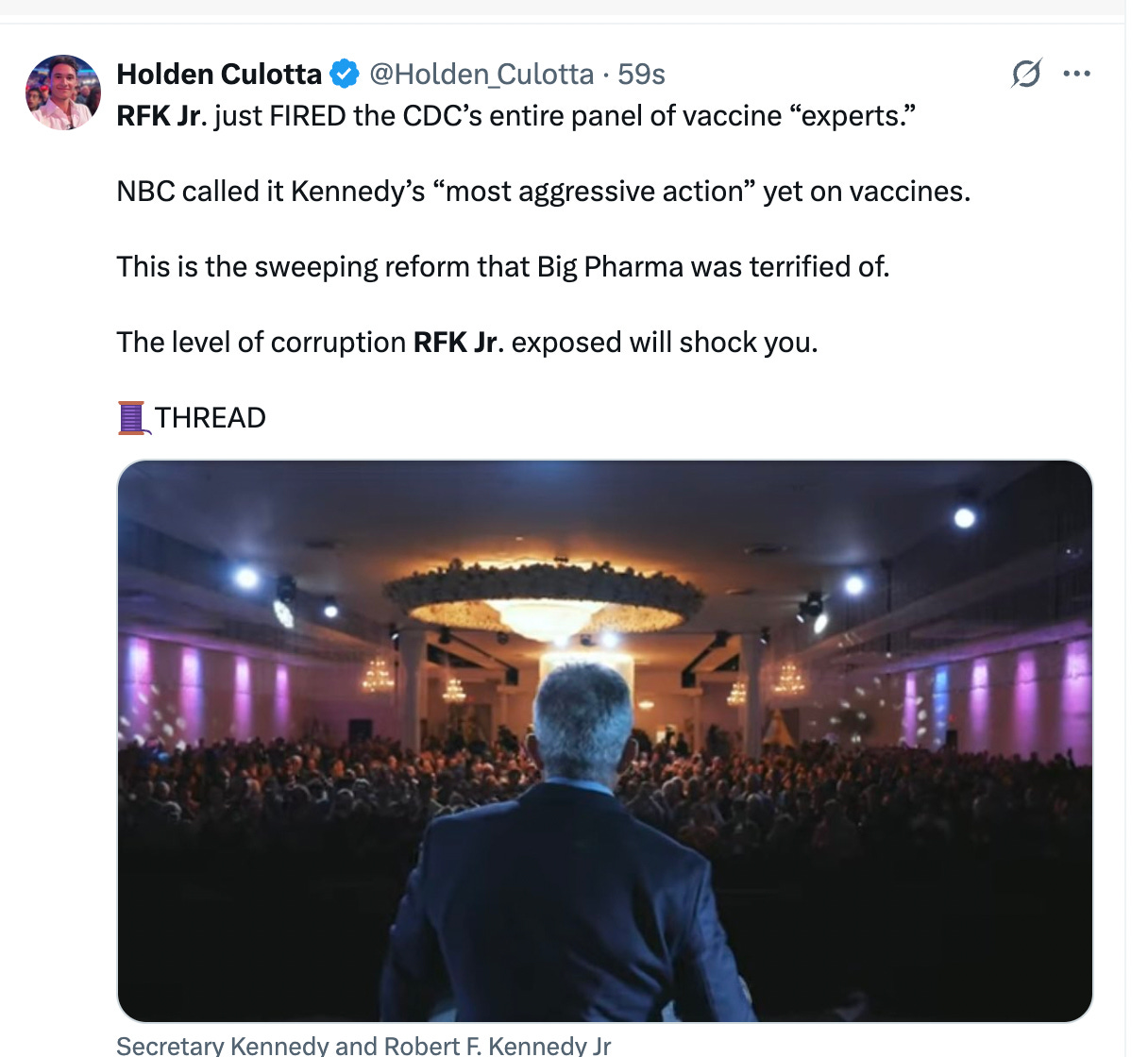 Kennedy Purges Entire CDC "Vaccine Panel" Appointed By Biden, Most Of Whom Have Financial Ties To Vaccine Manufacturers