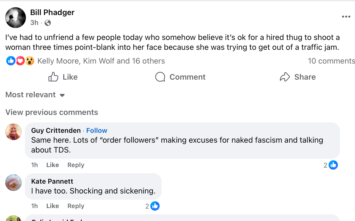 Horror and rage on the left, a kind of curious ICE apologia and defensiveness on the right.