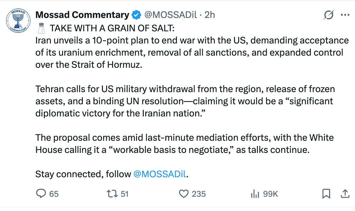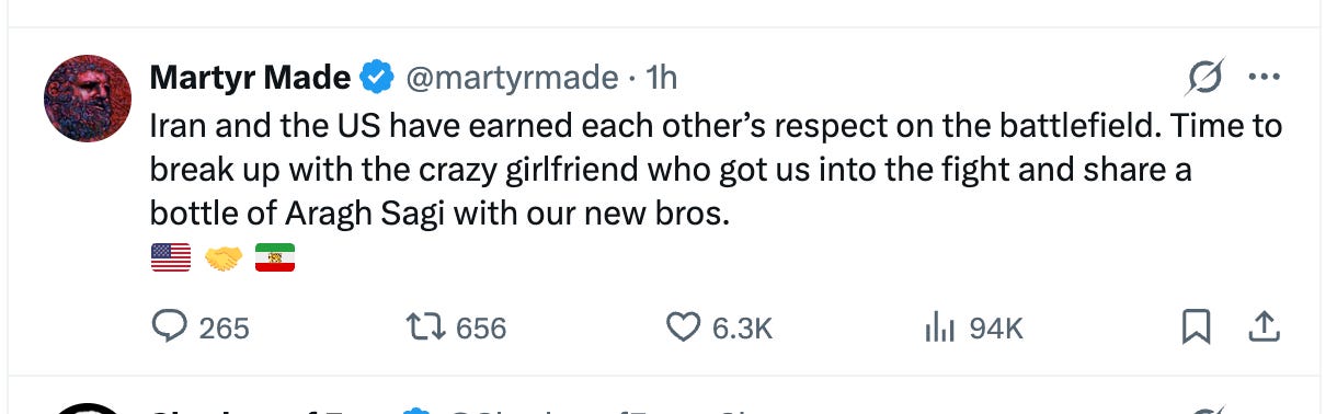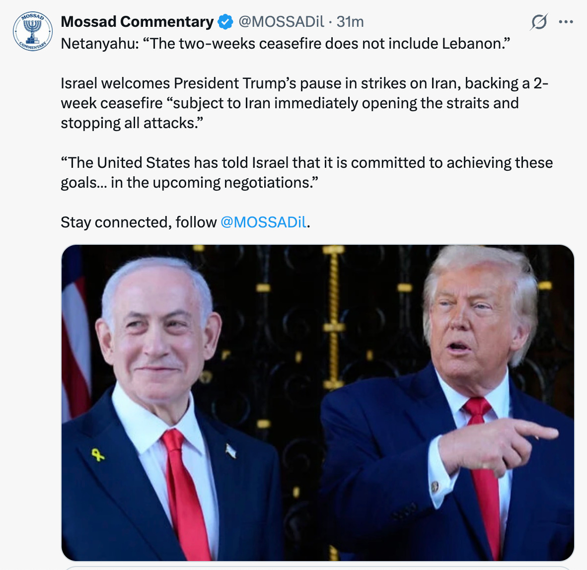 1st 🥇 lol first is usually last. Yet I am glad you brought up Israel and this 2 week treaty …. Bc I have yet seen any takes. I’m of the mindset that has grown to hate the nation of Israel.