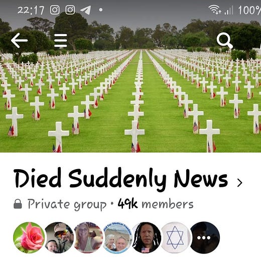 “What I have been saying since mid 2021. I work in a funeral home and commented on previous posts that this was happening. I was told by colleagues, friends, and family ( some of which are medical doctors); that this phenomenon was not occurring. In one week we did funeral for 38 yr old male, 37 yrs male and 29 yrs female. All died suddenly 2 were found at home, one at work. And others dying while doing yoga on vacations etc. I had 2 past colleagues die suddenly; one in there sleep and one from a massive heart attack which they survived, but didn't survive the stroke. I'm collecting data as we speak.”