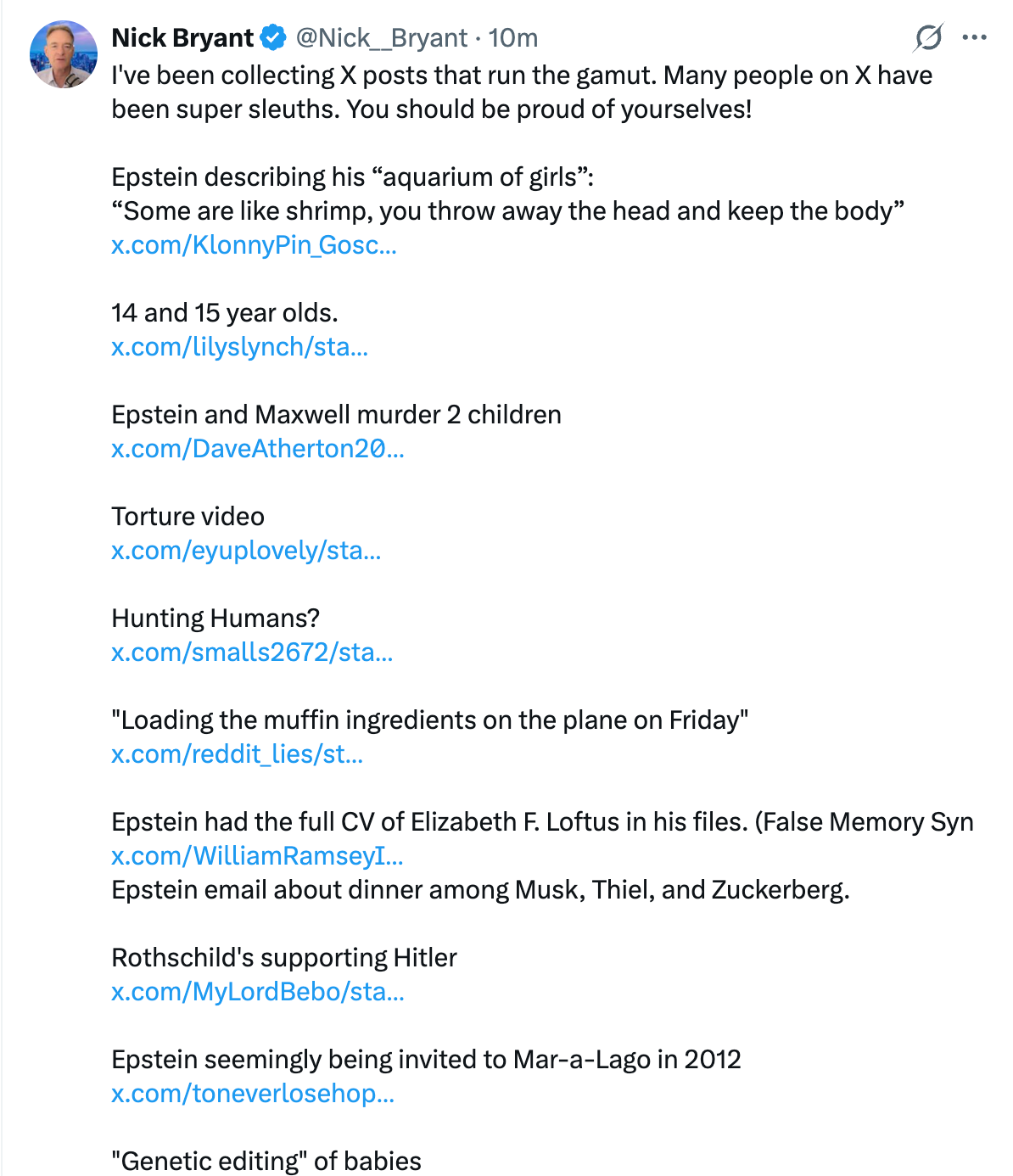 Time To Turn Hard Against Anybody In "Media" Who Tried To Minimize, Apologize, Or Deflect From Epstein Horrors: Nick Bryant Has Collected ALL The Evidence In One Post, For Anybody Still Unclear