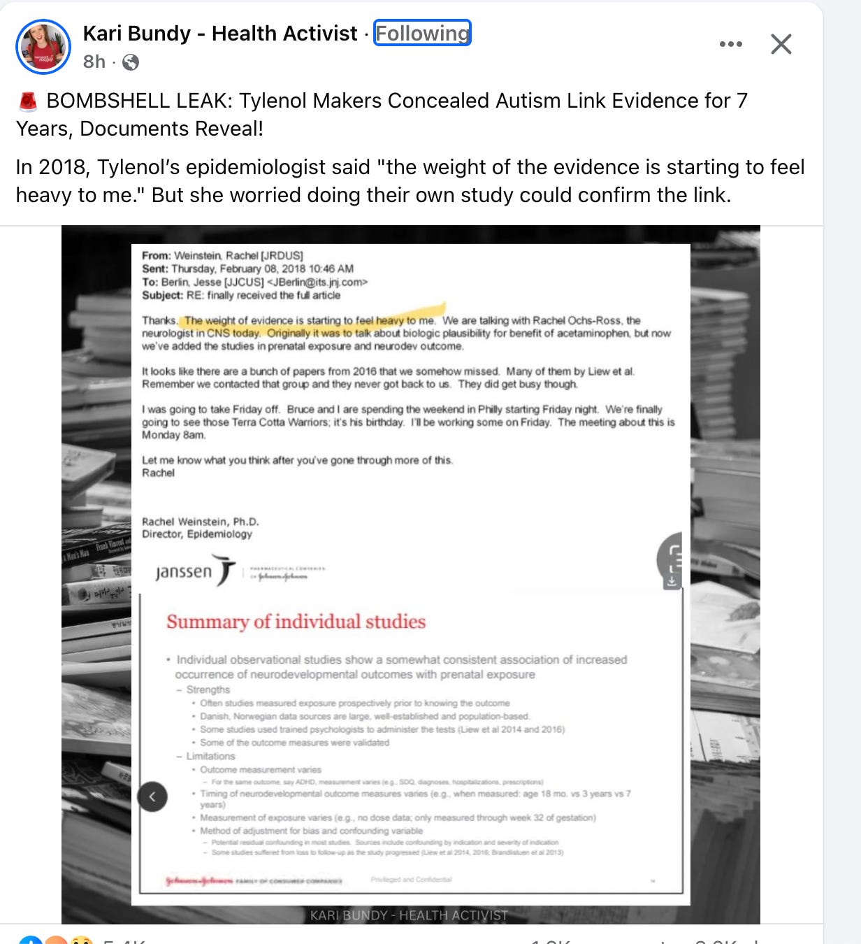 *I hope we can get past the deliberate distortion going around that anybody, RFK Jr. for example, claims Tylenol “causes autism.”