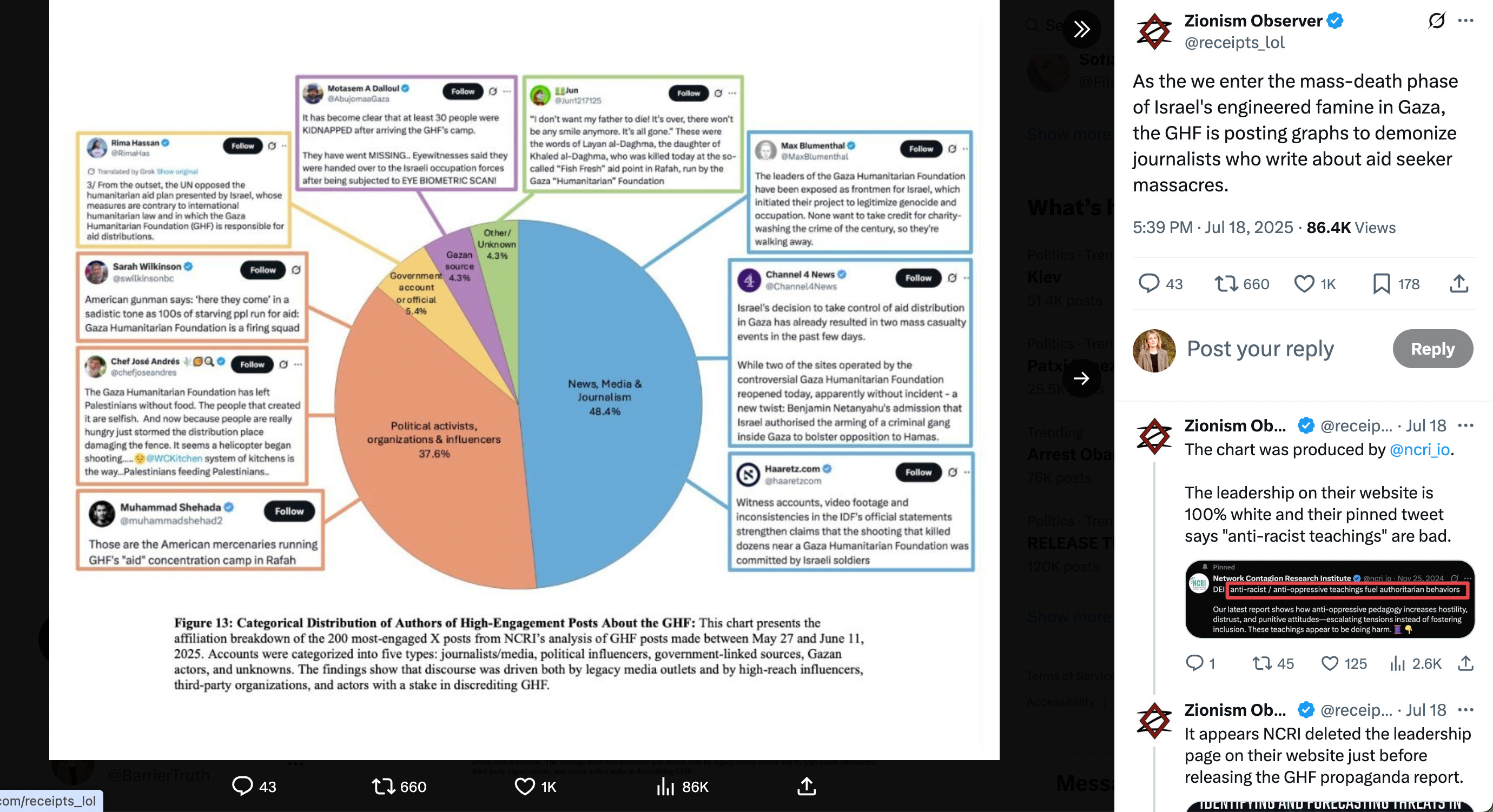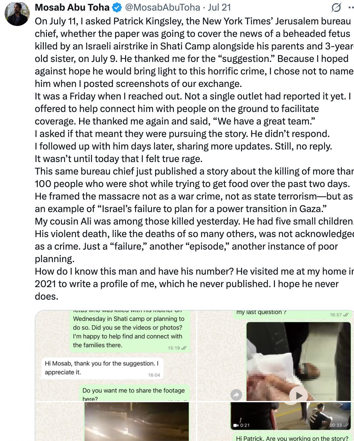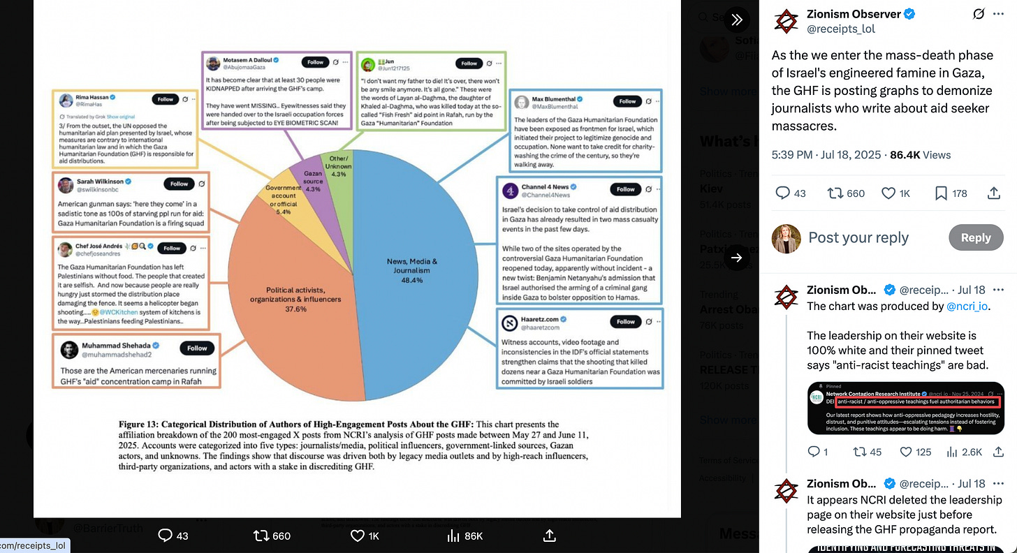Many Israeli accounts are insisting the famine is fake—a position also taken by Bari Weiss’ well funded propaganda outlet, The Free Press.