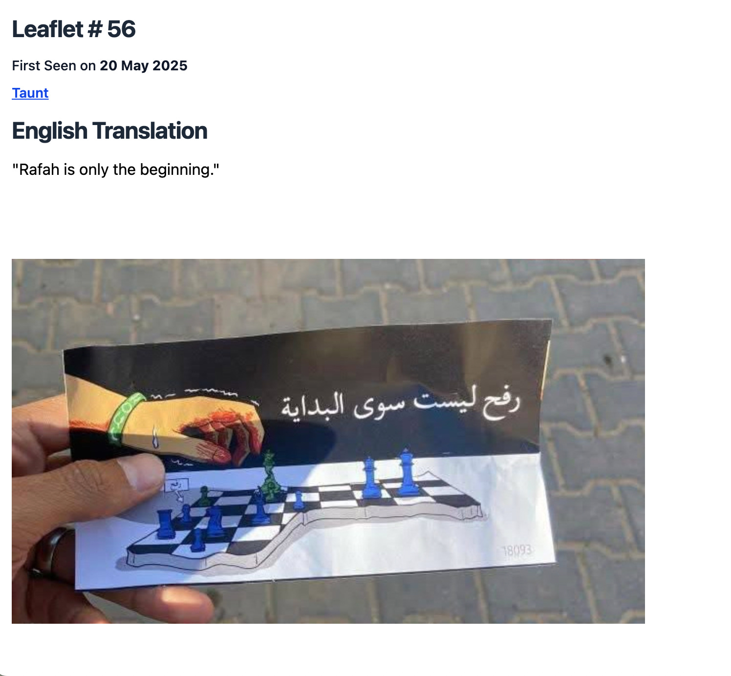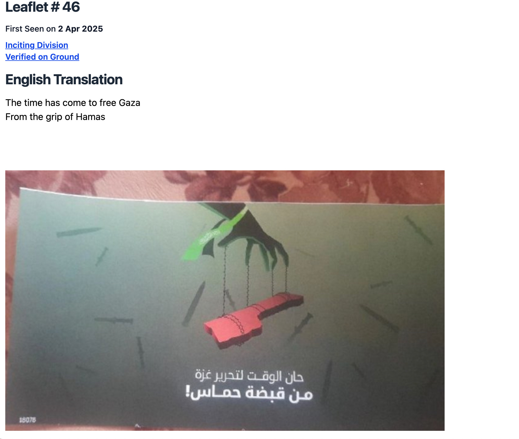 [IDF propaganda leaflets dropped over Gaza, can be seen here.]