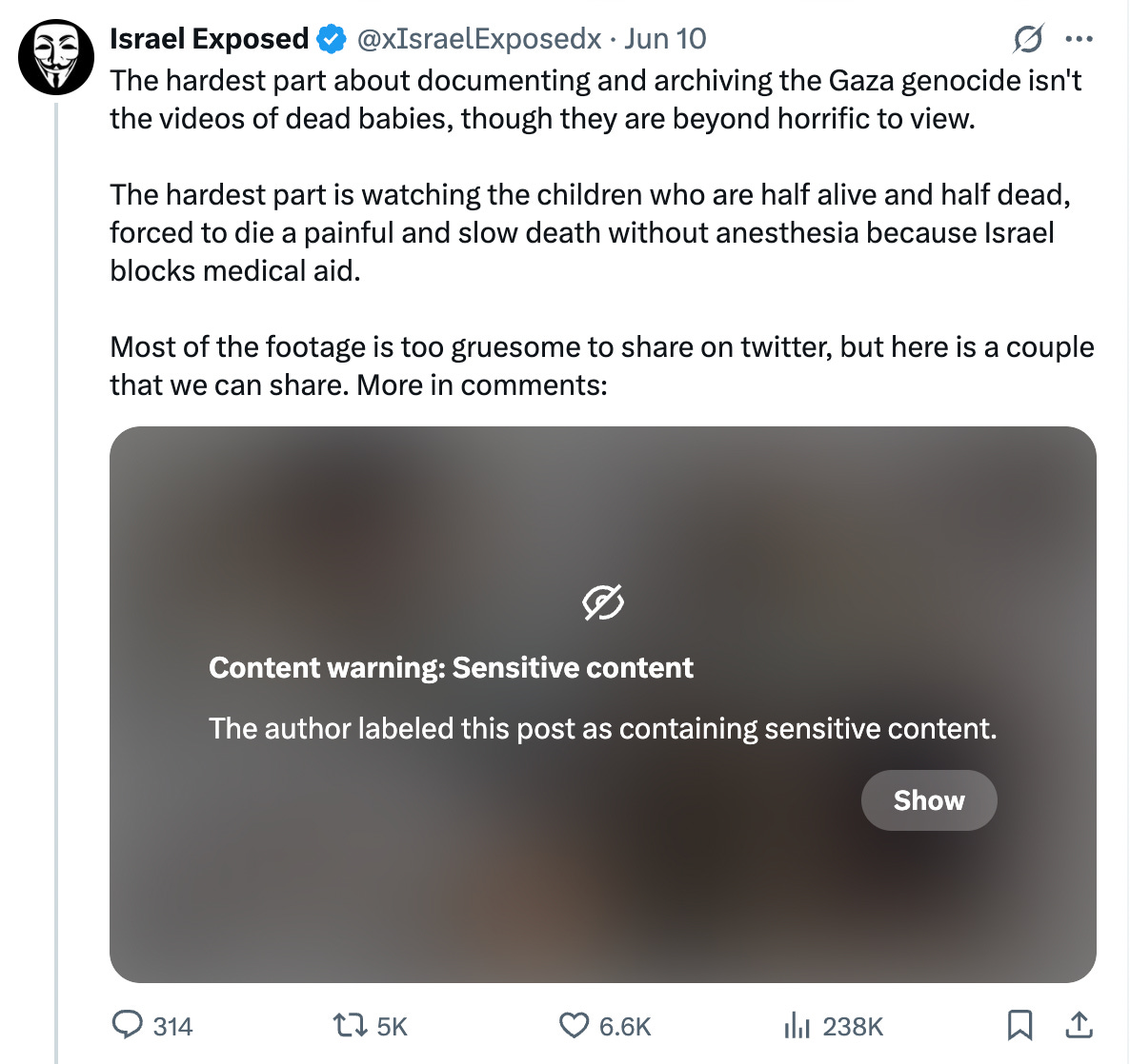 That the deaths are exaggerated, that many of the bodies are “clearly fake.” Staged. or AI generated.